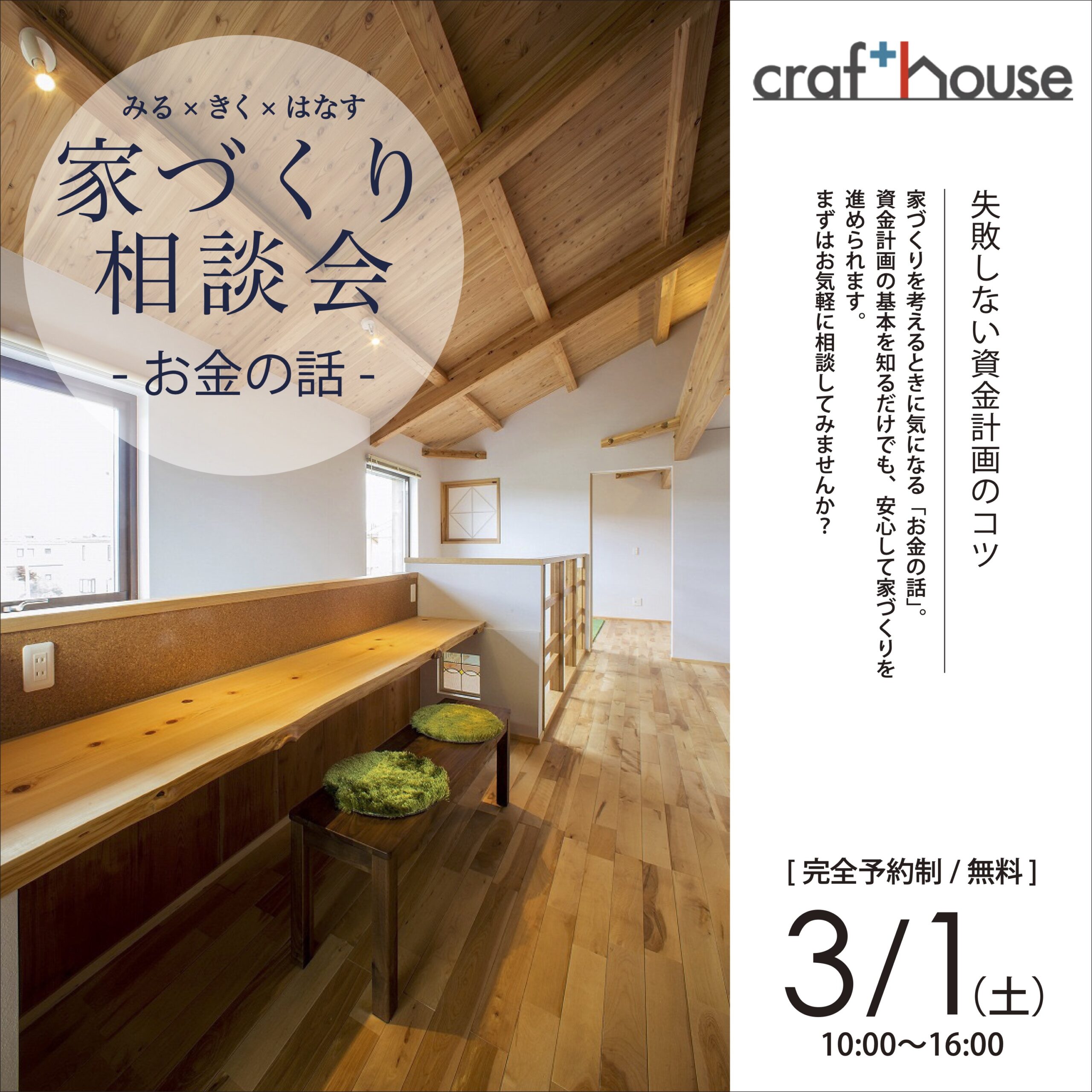 そこで、クラフト・ハウスでは家づくりを検討されている皆様に向けた【お金の相談会】を開催いたします!